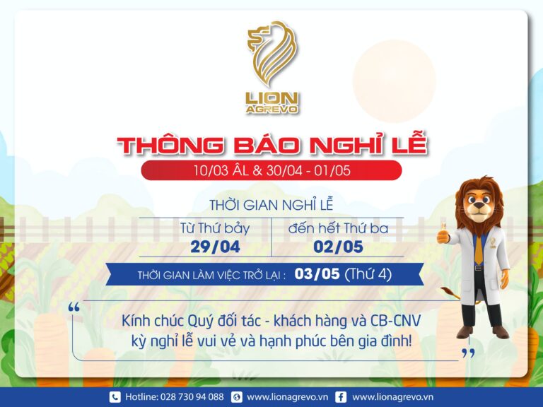 THÔNG BÁO: LỊCH NGHỈ LỄ 30/4 – 1/5 Kính gửi Quý Khách Hàng, Lion Agrevo xin gửi lời cảm ơn chân thành